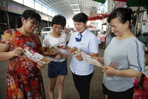 潘春莲在果蔬批发市场宣传邮储银行信用卡权益活动