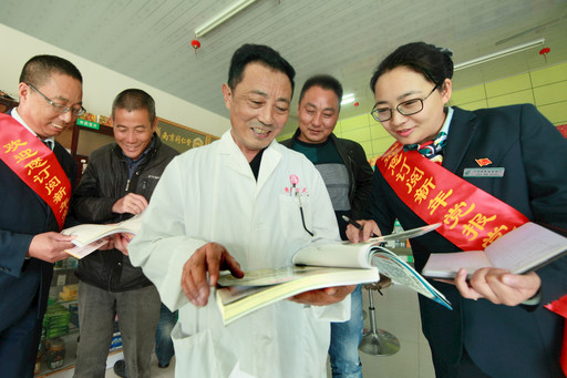 近日,江苏省金湖县邮政分公司党委抽调20多位党员骨干,组建了12支党报党刊发行工作突击队,以扩大邮政服务的广度与深度,着力加强2019年度党报党刊订阅工作,进一步发挥邮政企业党报党刊宣传的阵地作用。图为党员突击队队员到客户身边对党报党刊征订工作进行宣传。 □吉尔云 摄影报道