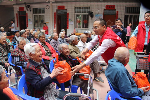 鹤山市支行党支部组织党员到龙口敬老院开展“金秋送暖,邮爱同行”党日活动,陪老人聊天、帮老人打扫卫生,并为老人们表演了精心准备的文艺节目。恩平市支行党支部随社区工作人员到3名困难党员家中进行慰问,将募集到的1200元善款和慰问品送到困难党员手中。这些志愿服务活动彰显了邮储银行全心全意为人民服务的精神,使广大党员进一步牢记宗旨意识、锤炼党性修养。图为城区支行党员为老人赠送慰问品。 □郭德海 摄影报道