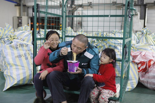 11月13日晚上,原本一片繁忙的四川省成都市邮政分公司火车东站揽投部内,突然响起了一个孩子的声音:“爸爸,面泡好了,快过来吃吧。”“卓宁,苹果叫你了,赶快停下来先去吃几口。看这架势,今天又要忙到后半夜了。”揽收组组长余军跃拍了拍正忙着卸车的揽收员卓宁说,“放心,这儿有我顶着。”
