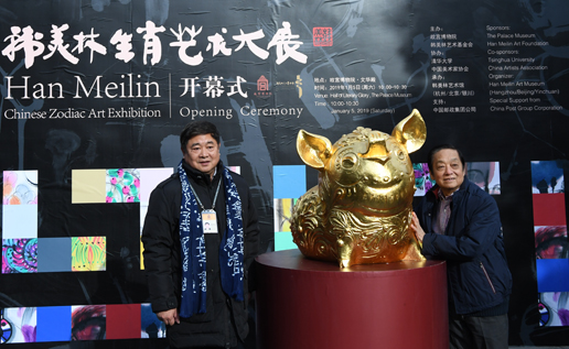 1月5日,“韩美林生肖艺术大展”开幕式及《己亥年》特种邮票首发仪式在故宫文华殿广场举行。该套邮票设计者、著名艺术家韩美林与中国邮政集团公司董事长、党组书记刘爱力共同为邮票揭幕,两位还与中国文联主席、中国作协主席铁凝,故宫博物院院长单霁翔,著名作家冯骥才,中国邮政集团公司党组副书记李丕征等嘉宾一同为展览揭幕。著名主持人白岩松主持了此次仪式。