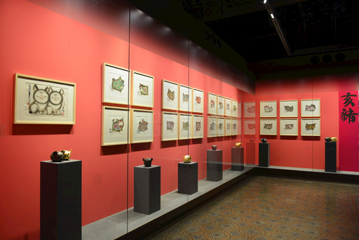 第一部分“生生不息”,意为“生肖轮回,生生不息”,不仅是指人类生命的生长与繁殖,也喻指韩美林艺术创作的变化与创生。这部分的展品,以韩美林创作的十二生肖动物作品为主,依照子、丑、寅、卯等十二生肖的排序,形成既连续又独立的12个展示板块。每一个板块以一个生肖为主题,通过将韩美林相关的平面作品、立体作品以及陶瓷、紫砂、木雕、铁艺等不同媒介的作品进行展陈布置,既多样丰富又统一整体。