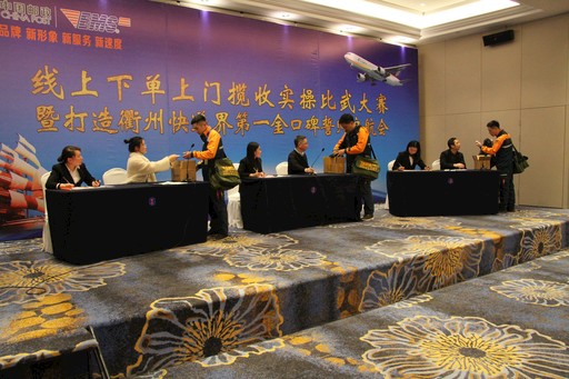 3月31日晚,浙江省衢州市邮政分公司举行全市线上下单上门揽收实操比武大赛暨打造衢州快递界第一金口碑誓师启航会。各县(市)寄递事业部、市本级各综合营业部共组成10支代表队,每支参赛队由3名揽投员组成。各参赛队根据比赛要求,结合工作实际,展示了揽投人员在操作技能、服务用语、礼仪规范等方面的能力与素养。□冯君 摄影报道