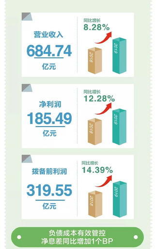 4月25日,中国邮政储蓄银行公布2019年一季度业绩。一季度,邮储银行贯彻落实新发展理念和高质量发展要求,围绕建设一流大型零售商业银行的目标,坚持转型发展主线,进一步巩固县域优势,强化“四大支撑”,推进“五化”转型,资产负债规模平稳增长,业务结构持续优化,盈利能力持续提升,资产质量持续改善,各项业务平稳开局,各项指标稳中向好。