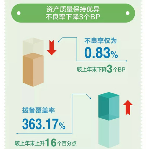 一季报显示,邮储银行资产规模首次突破10万亿元,较上年末增长6.59%;拨备前利润319.55亿元,同比增长14.39%;净利润185.49亿元,同比增长12.28%,重回两位数增速;净息差2.58%,同比提升1个BP,持续领先同业;不良率仅为0.83%,较上年末下降0.03个百分点,拨备覆盖率363.17%,较上年末进一步提升16.37个百分点,资产质量继续保持行业领先。□褚宣