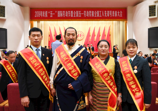 2019年4月23日,庆祝“五一”国际劳动节暨全国五一劳动奖和全国工人先锋号表彰大会在京召开。邮政系统7人获全国五一劳动奖章、9单位获全国工人先锋号,其美多吉、柴闪闪、益西卓嘎、韦艳梅作为代表,受邀进京参加表彰大会。