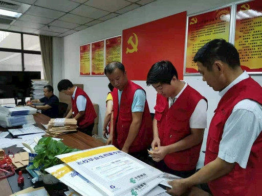 7月12日,周口师范学院里出现了一群身穿红马甲的人,他们有的负责贴封条、核实盖章,有的清点邮件、打单封装,有序开展学生档案收寄工作。带头人陈东说:“今年,周口师范学院要发寄的内件材料比往年都多,核对、打单、封装、发运、清点校验,每个环节都不能马虎。为了赶时间,党员们12个小时不停作业,午饭就啃个烧饼夹鸡蛋,为了基层的业务发展,真是拼了。”