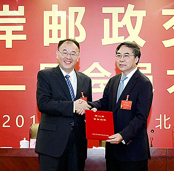 9月20日海峡两岸邮政交流协会第二届会员大会在京召开。国家邮政局局长马军胜、中国邮政集团公司董事长刘爱力、国务院台湾事务办公室经济局局长张世宏以及交通运输部、民政部等相关部门领导出席会议。