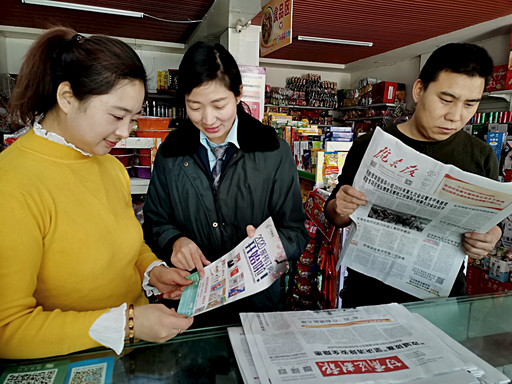 甘肃省庆城县邮政分公司在2020年报刊大收订工作中,结合“不忘初心、牢记使命”主题教育,大力改变工作作风,做到早部署、早安排。除各营业厅收订专柜加班加点服务,还变“坐等上门”为进机关、进学校、进企业、进社区、进门店、进村组等,上门宣传业务,极大方便了广大订户。图为12月6日,机关党员支撑一线,来到超市宣传业务。□李世栋 张海涛 摄影报道
