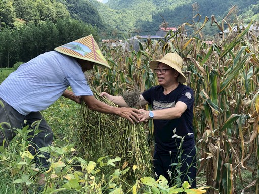 陈泽维帮助贫困户收获黄豆。李蓉 摄