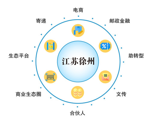 正如徐州邮政云邮众创基地的案例一样,各地邮政都在积极构建自身协同体系,探索邮政特色商业生态圈发展模式。在河南新乡,邮政客户的积分不仅可以用来支付邮费、购买简易险、农资、个性化邮票、兑换邮政电商产品,还可以用来加油、给孩子订阅教材等;在湖南株洲,与邮政合作,就相当于跟整个黄桃电商产业链合作;在江苏徐州,邮政电商客户可以获得邮政电商孵化基地提供的“金融+寄递+文创+电商+第三方服务+政府引导”等一揽子电商综合服务。