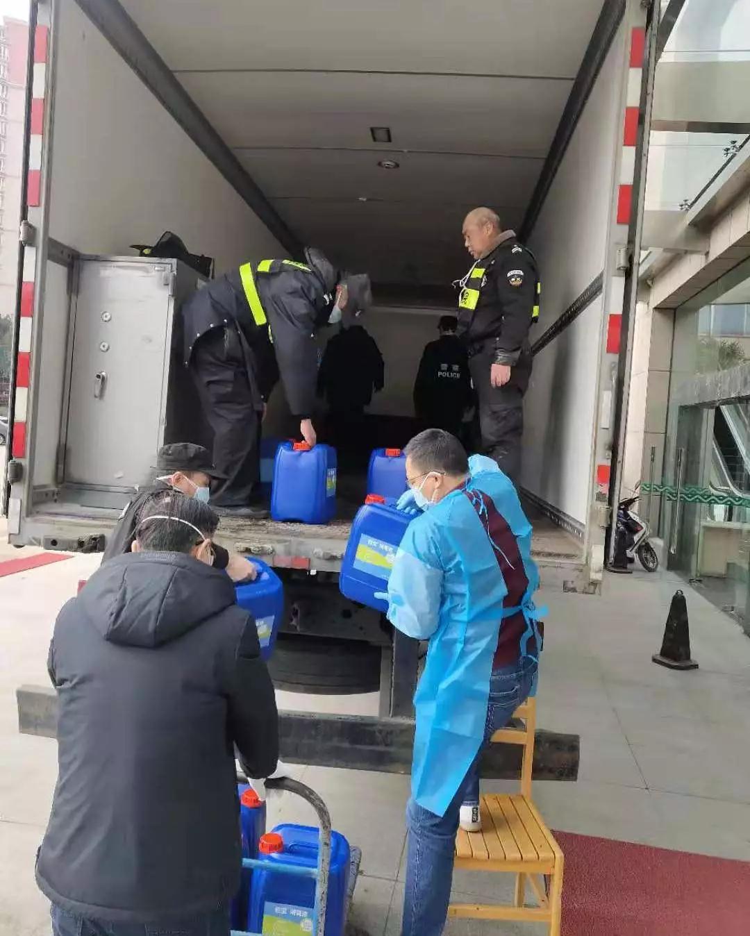 科技公司已经下班,只留下2名员工,阜宁邮政的4名员工就成了主力,大家一起努力,花了3个小时总算将500箱10吨消毒液和一些医护用品装上了车。