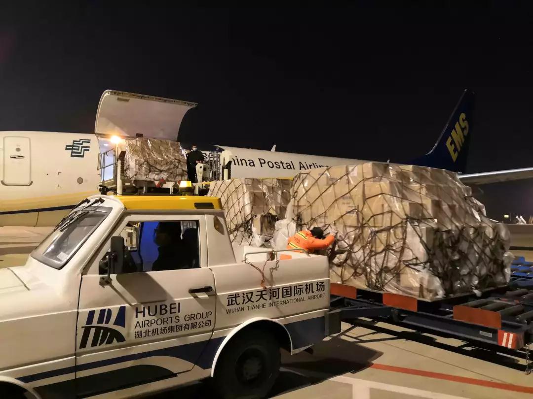 21时18分,邮航CF9117航班在武汉天河机场降落后,邮航武汉办事处人员和天河机场地面保障人员立即展开卸机作业,全部作业流程顺畅有序,仅历时20分钟。一场紧张忙碌的作业后,这批物资已迅速运往需求方处。