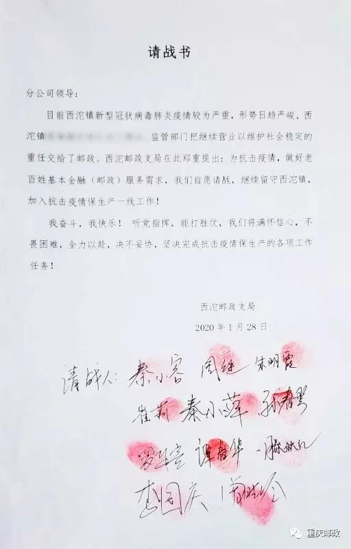 请战书上,有邮政人11枚鲜红的指印