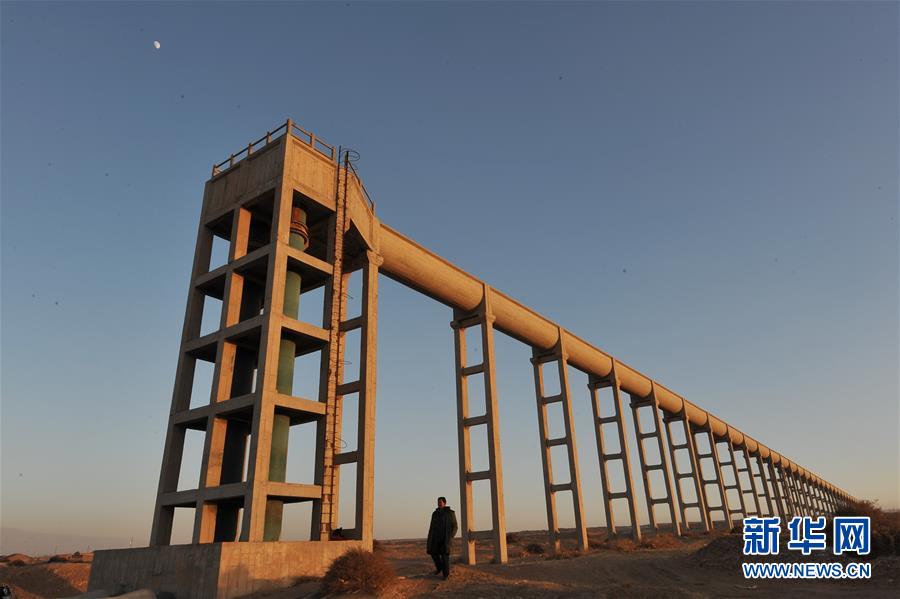 这是位于红寺堡境内的宁夏扶贫扬黄灌溉工程泵站输水管道(2009年12月27日摄)。 新华社记者 王鹏 摄