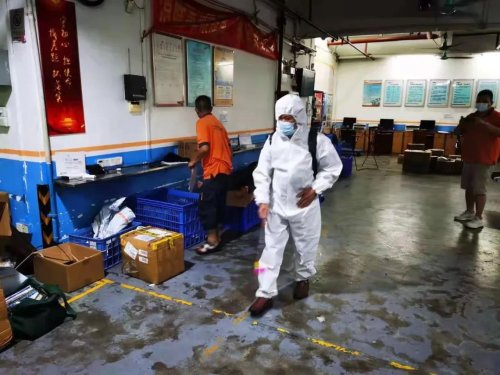 加强全市所有站点、邮件处理中心、办公场所管控,员工、外来人员和车辆进入均要求正确佩戴好口罩,测量体温,并严格执行查验健康证明。