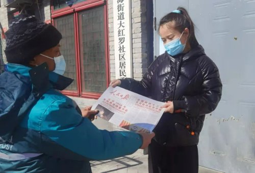 投递员将最新两会消息送达订户手中
