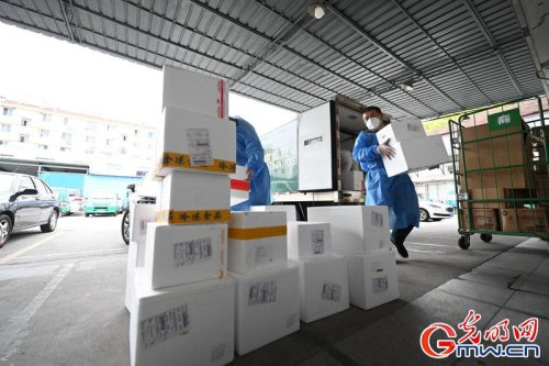 据悉,目前,奉贤邮政部门参与全区保供物资最后 10 公里和最后 1 公里的配送,原本投入快件投递的车辆和人员全部用于保供物资的转运中,确保当日物资当日送达。(沈春琛摄 / 光明图片 / 视觉中国)