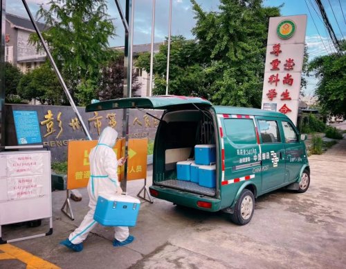 彭州邮政转运核酸样本。(成都邮政分公司供图)