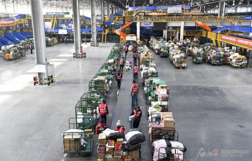 1月8日,中国邮政集团有限公司乌鲁木齐邮区中心忙碌的自动分拣线。中国邮政乌鲁木齐邮区中心陆航处理中心是新疆邮政进出口邮件的生产枢纽。1月1日-7日,共处理邮件305万件,同比增长110%。邮区中心2023年“春节不打烊”,全力满足节日期间商家、消费者寄递需求。
