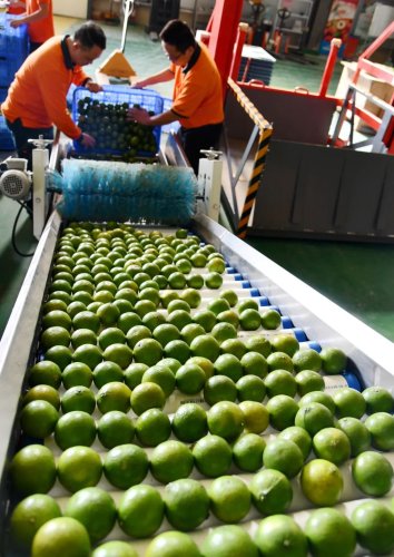 “在我们这条20多米的分拣线上,可以根据客户要求设置果径、重量等参数,精准筛选每一枚水果,大大提高了分拣效率。”三科农业副总经理刘翔介绍说。场地另一侧,刚刚分拣好的水果被放上皮带传送机,邮政工作人员随即将其装车发往全国各地。