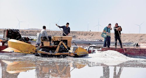 王海进在盐场投递途中。