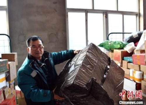 1月25日,杨小合正在搬运将要投递的邮件。韩冰 摄