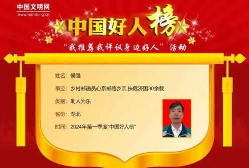 十堰广播电视台:点赞!十堰邮递员侯强荣登2024年一季度“中国好人榜”