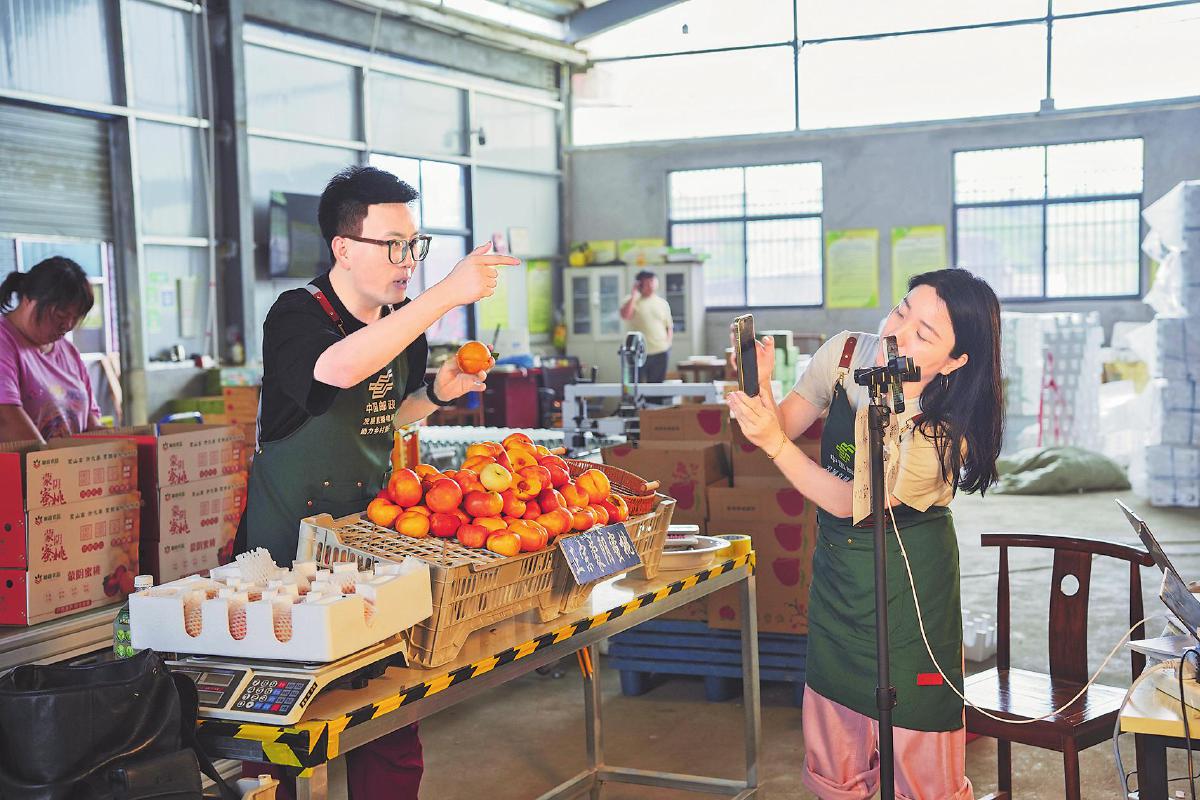 山东蒙阴被誉为“中国蜜桃之都”,其位于北纬35度的黄金水果带,孕育出了享誉全国的蒙阴蜜桃。借助今年“919”邮政农品节,临沂市邮政分公司充分发挥协同优势,将产自红色沂蒙山的蒙阴蜜桃作为助力乡村振兴的重点项目来推动,通过助农直播、专项营销,让蒙阴蜜桃走出山村、走向全国。“今天给大家推荐的是蒙阴黄金蟠桃,现摘现发,主打一个新鲜……”在临沂市分公司的网络直播间,主播卖力吆喝,网友下单不断。借助电商直播的热潮,临沂市分公司积极发展直播电商,布局线上渠道和直播带货资源。7月初正值蟠桃上市的季节,也是蒙阴蜜桃最为热销的季节。临沂市分公司抽调邮政业务部、寄递事业部、直播团队的人员组成溯源直播小组,对接合作社、种植户,开展选品组品工作,做好产品上架、宣传;同时,与市文旅局联合开展直播推广活动,宣传视频播放量超200万次。经过预热造势,直播当天,短短1小时就销售蜜桃4000余单。今年以来,临沂邮政直播团队累计销售蒙阴蜜桃10万单,销售额达260万元。“919”邮政农品节期间,临沂市分公司选择“金皇后”黄桃为主打产品,搭配秋月梨,创新推出“桃梨满天下”礼盒,围绕教师节、中秋节开展线上推广与销售活动。清晨6点,在蒙阴蜜桃邮政仓储配送中心,桃农已经开始了一天的劳作。他们将采摘的桃子进行摘袋、挑选,邮政工作人员则忙着装箱、打包、发货。“与邮政合作后,我们的桃子都是根据订单现采现装。邮政当天就会把桃子运走,无须存放,这可省去了我们很多麻烦!”蒙阴云蒙庄怡生态农业专业合作社负责人侯克生高兴地说。