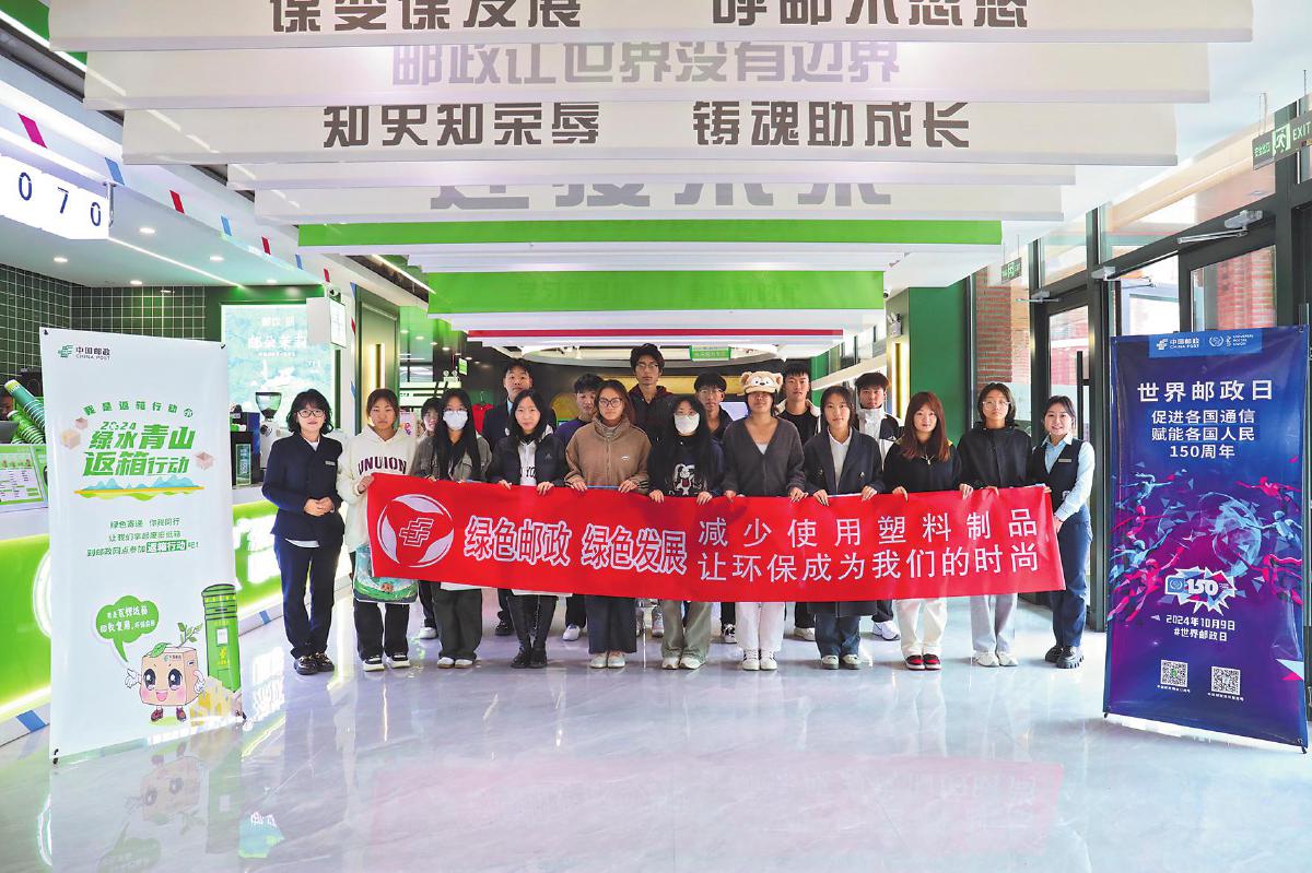内蒙古自治区邮政分公司会同呼和浩特市邮政分公司,以全区首家校园主题邮局——思成建院主题邮局为阵地,组织开展了世界邮政日主题宣传活动。“绿色邮政为美好生活加速”环保活动、财富投教宣讲、助农直播等丰富多彩的活动吸引了广大师生的关注和参与。 □王圆圆 摄