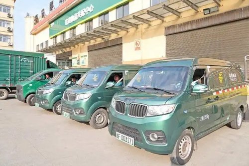 新能源汽车派送包裹。杨英摄