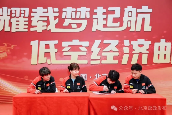 北京邮电大学党委书记续梅、校长徐坤,中国邮政集团有限公司寄递事业部副总经理、中邮无人机(北京)有限公司执行董事许宁,中国国家乒乓球队运动员林诗栋、向鹏、王艺迪、陈幸同出席活动。