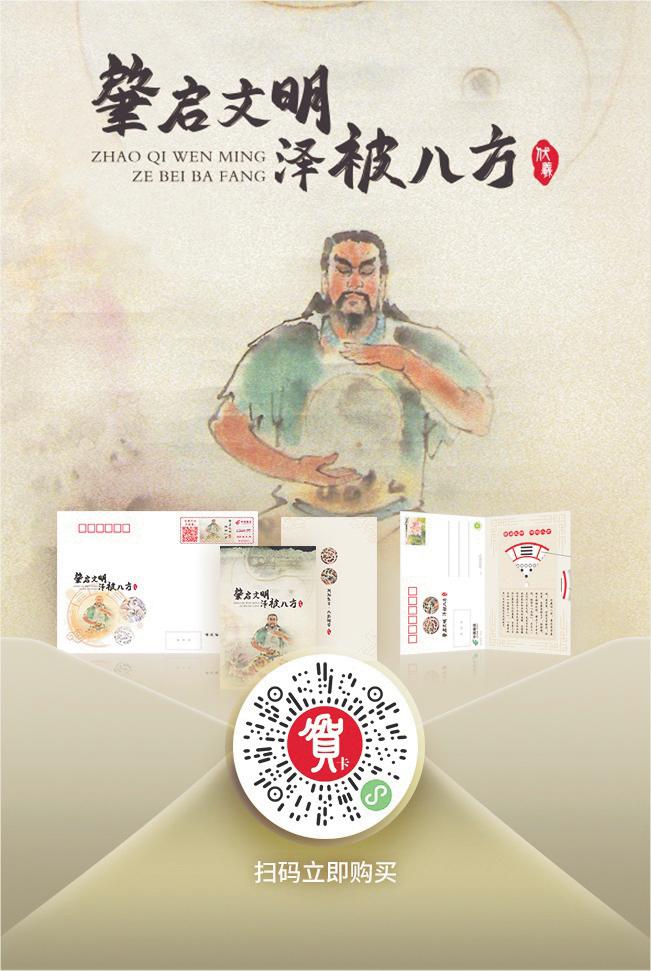 其中,《肇启文明 泽被八方》明信片的设计十分新颖,画面以水墨为底,晕染出伏羲的神韵,仿佛能看到远古智者的沉思;一幅可转动的八卦图嵌入其中,轻轻拨动,“乾、坤、震、巽……”这些蕴含宇宙相生规律的符号缓缓流转,如同将“万事顺意、生生不息”的祈愿,通过指尖的触碰传递到心底;配套的定制信封,印刻“羲皇赐福·八卦承吉”字样,羲皇形象与传统八卦、祥瑞图案相互交融。