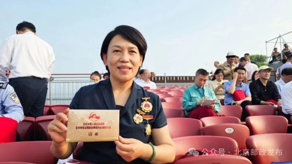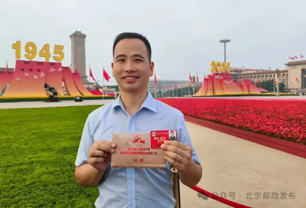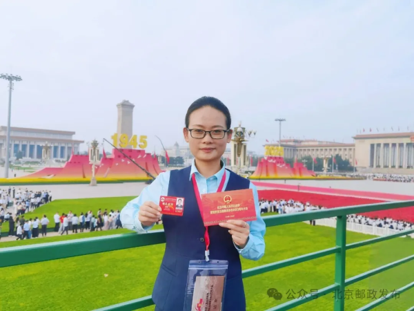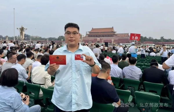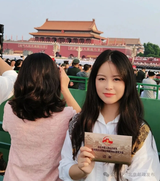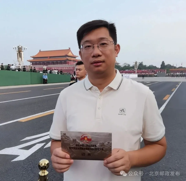 今天,北京的天空格外蔚蓝,我有幸参加了纪念中国人民抗日战争暨世界反法西斯战争胜利80周年大会阅兵。作为一名观礼者,我亲眼目睹了我们人民军队的威武雄壮,感受到了祖国的强大和将士们的英勇。作为一名新时代邮政青年,我会继续立足岗位,继承和发扬抗战精神,以更加饱满的热情和更加昂扬的斗志,投身到邮政事业发展中去,为创造更加美好的未来而不懈努力。上午阅兵式结束后,今天下午我也要进入阅兵村,投入到紧张的重大活动邮政通信保障服务工作中,全力做好服务保障,彰显中国邮政国家队的政治责任和使命担当。