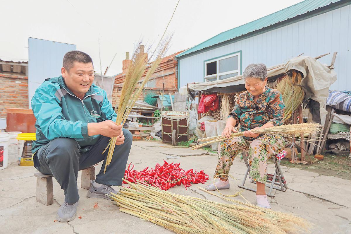 刘春光帮留守老人干活。