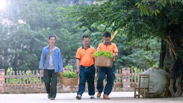 清晨薄雾未散,采访组跟随邮车来到了大新县恩城乡维新村陇蛮屯。种植户陆海明正在自家庭院细心打理带着露珠的嫩芽。“这就是我们喀斯特山区的特色蔬菜——龙须菜,当地人都叫它姑娘菜。”站在郁郁葱葱的菜地里,记者随手采摘一片嫩芽品尝,初尝微苦,细细咀嚼后满口回甘。