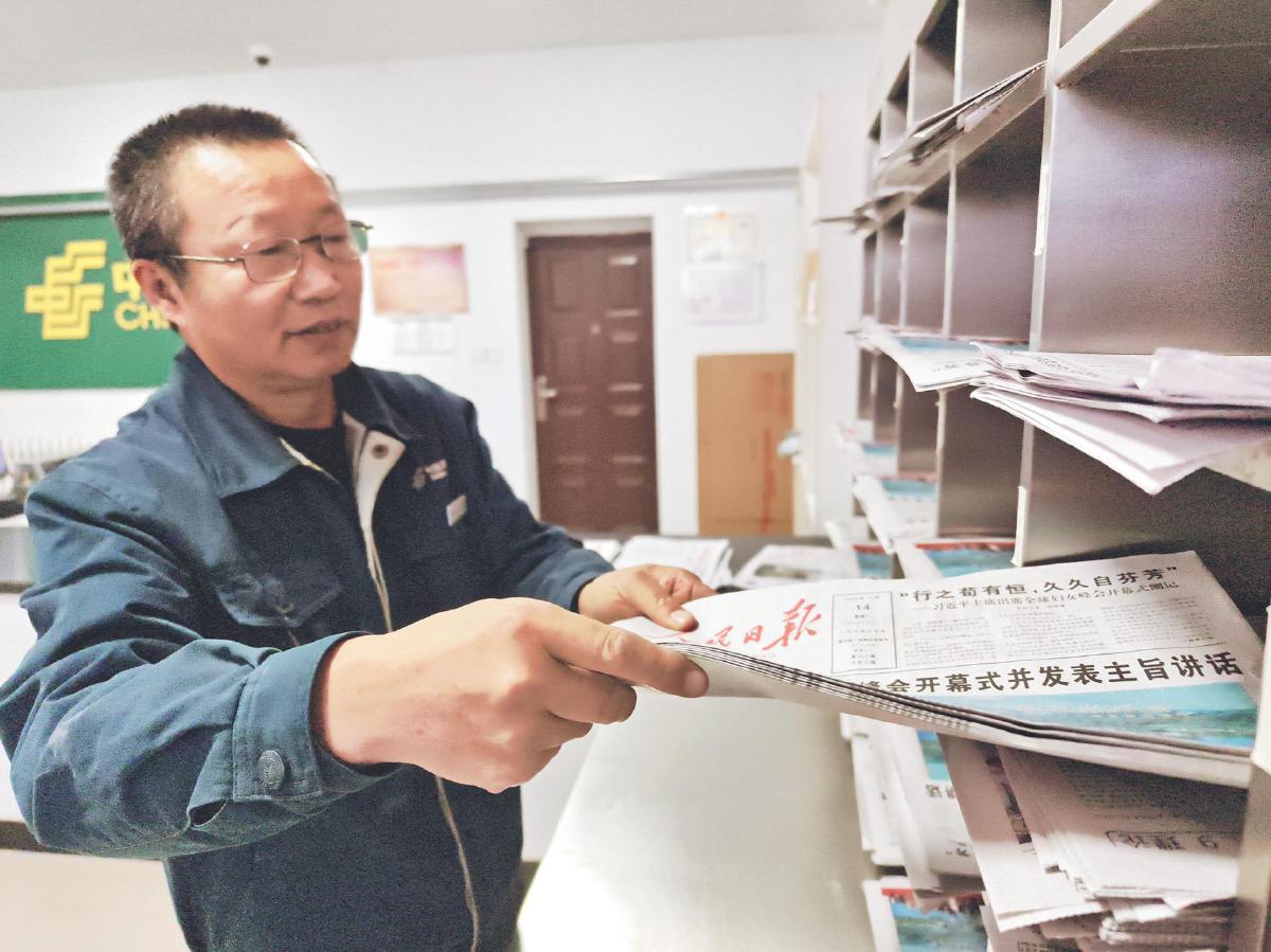 熊志军分拣报刊。