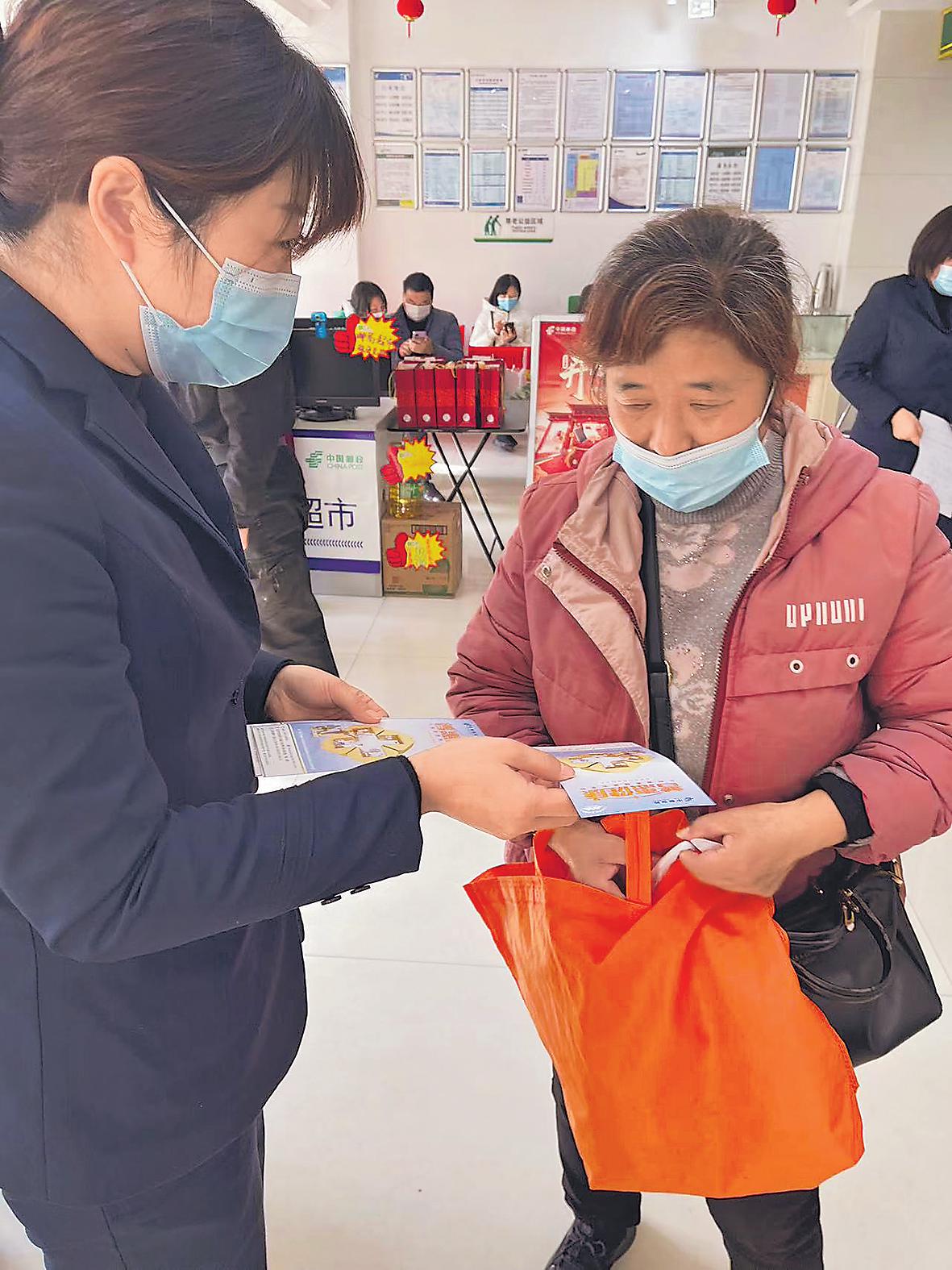 南京市江宁区邮政分公司禄口支局员工向客户推介普惠保险。