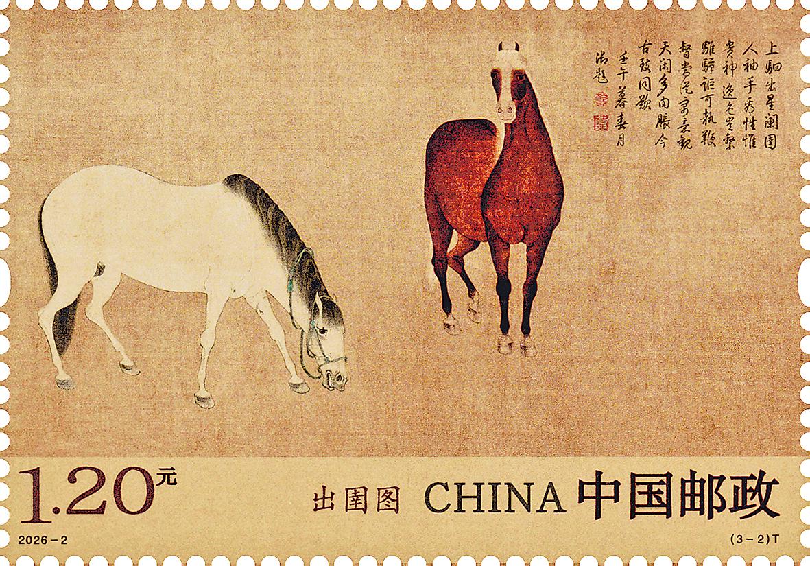 3月3日,《出圉图》特种邮票1套3枚发行。邮票图案名称均为:出圉图(局部)。