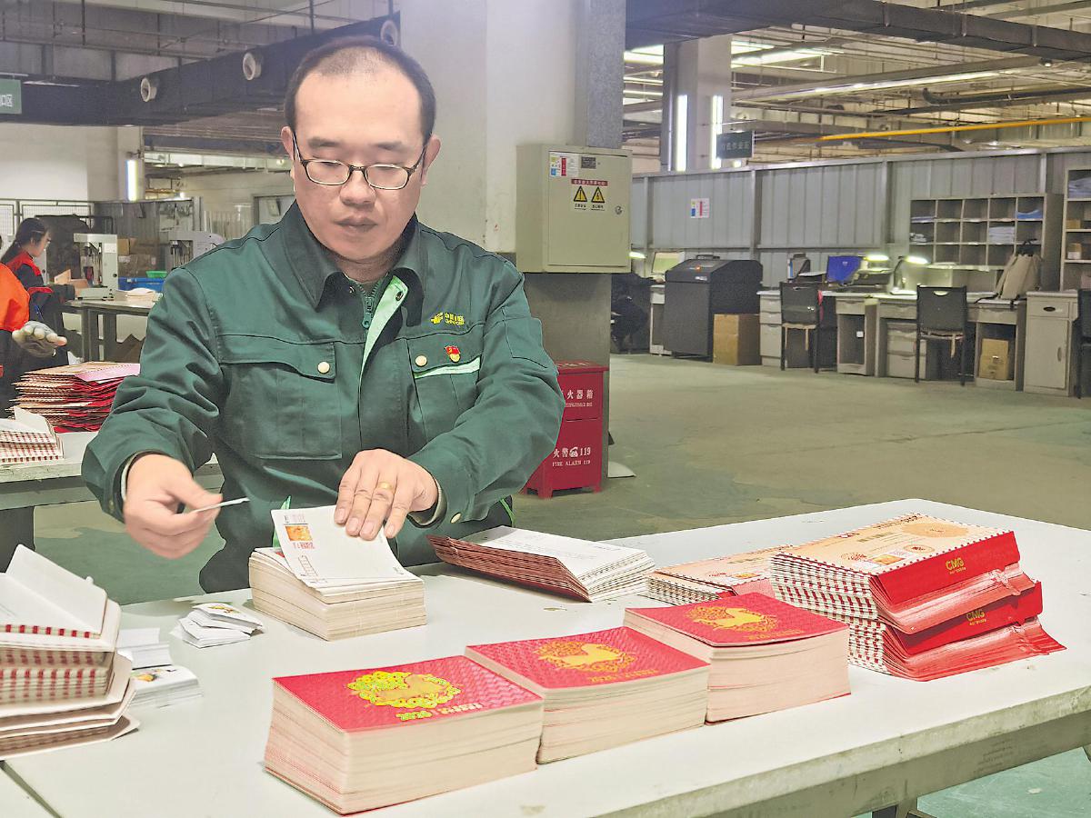 在封装环节,北京邮政工作人员手工“打包”每一份祝福。