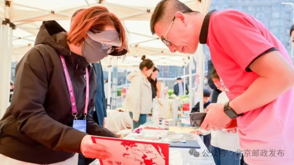 在集市现场,工作人员不仅为跑者和市民提供路线指引、休息咨询等暖心服务,还精心布置特色邮品与文创展台。富有体育精神和北京特色的邮政文创产品,吸引了不少跑者驻足打卡,让大家在紧张备赛之余,感受到邮政服务的温度与文化魅力。